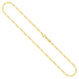 Goldkette als Figarokette diamantiert in Gelbgold 375 / 9K, 38 cm lang, 2,2 mm breit, Gewicht ca. 3.5 g.